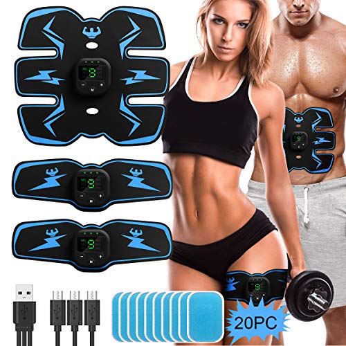 ABS Stimulator Abdominal Muscle Toner, EMS Abdomen Muscle Trainer Toning Workout Rechargeable for Men Women, Free 20pcs Gel Pads