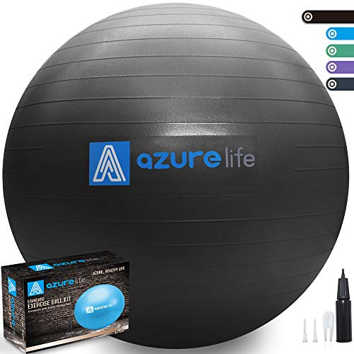 AZURE LIFE Professional Grade Exercise Ball, Anti-Burst&Non-Slip Stability Balance Ball with Quick Pump Included, Multiple Sizes&Colors, Perfect for Birthing, Yoga, Pilates, Desk Chairs&Therapy
