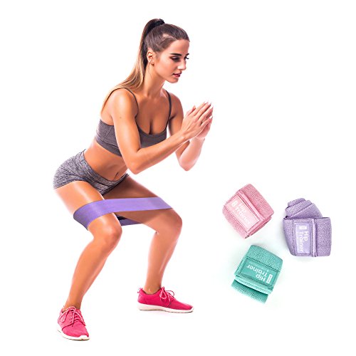 Booty Resistance Workout Fabric Non Slip Hip Bands, Set of 3, Perfect for Squats, Butt, Thigh and Hip Workout. Loop, Soft Cloth Resistance Booty Bands. Full Exercise Guide Included