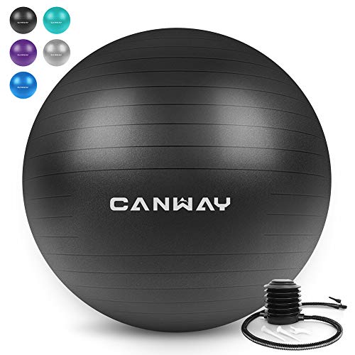 Canway Exercise Ball – Extra Thick & Slip Resistant Workout Ball, Professional Grade 2200lbs Anti-Burst Stability Ball, 65CM Yoga Ball with Quick Foot Pump (Black)