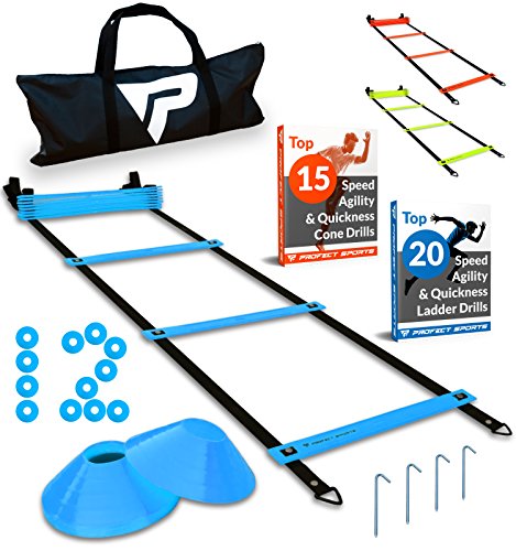 - PROVEN TO INCREASE AGILITY AND SPEED – Agility ladder and cone drills are proven to improve quick foot speed, acceleration, strength, fitness, conditioning, endurance, and reduce the chance of injury. This set is perfect for coaches and athletes training for all sports including football drills, soccer practice, basketball, lacrosse, hockey, baseball, tennis, track and field.