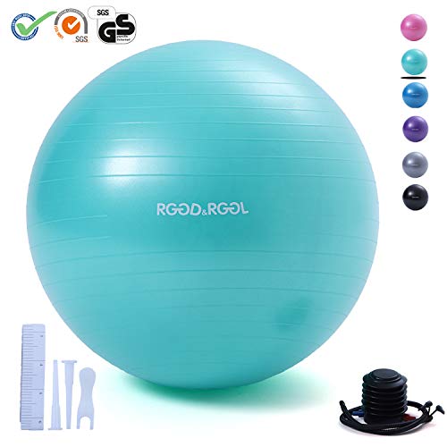 RGGD&RGGL Exercise Ball (18-34in),Professional Yoga Stability Ball Chair Extra Thick Anti-Burst Support 2200 lbs,with Quick Pump &Workout Guide for Home&Gym&Office (Mint Green, 18inch)