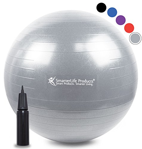 SmarterLife Exercise Ball for Yoga, Pilates, Therapy, Balance, Stability, Posture Support, Desk Chair and Birthing | Anti Burst, Non Slip Design | Workout Guide + eBook (Silver, 55 cm)