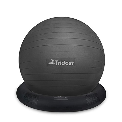 Trideer Ball Chair – Exercise Stability Yoga Ball with Base for Home and Office Desk, Ball Seat, Flexible Seating with Resistance Bands & Pump, Improves Balance, Back Pain, Core Strength & Posture