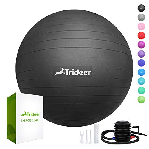 Trideer Exercise Ball (45-85cm) Extra Thick Yoga Ball Chair, Anti-Burst Heavy Duty Stability Ball Supports 2200lbs, Birthing Ball with Quick Pump (Office & Home & Gym) (Black, XL (68-75cm))