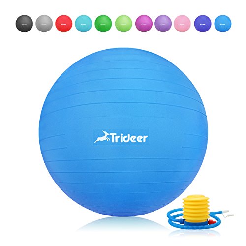 Trideer Exercise Ball (45-85cm) EXTRA THICK Yoga Ball Chair, Anti-Burst Heavy Duty Stability Ball Supports 2200lbs, Birthing Ball with Quick Pump (Office & Home & Gym) (Dark Blue, 55cm)
