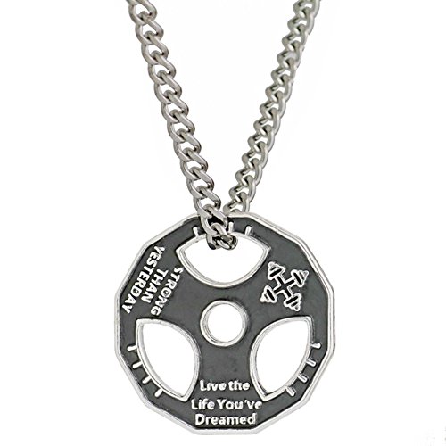 - Engraved Dumbbell Barbell Charm:”Be strong, Not Fat” “Let Rubbish out of body” “Strong than yesterday” “Live the life you dreamed” FITNESS INSPIRED: Show your dedication to fitness with this weight-themed necklace!