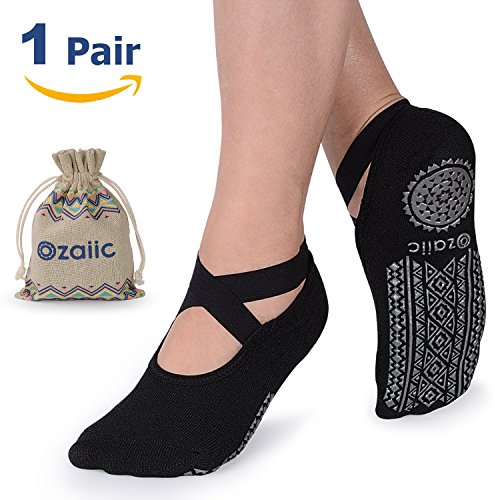 Yoga Socks for Women Non-Slip Grips & Straps, Ideal for Pilates, Pure Barre, Ballet, Dance, Barefoot Workout (Black, One size)